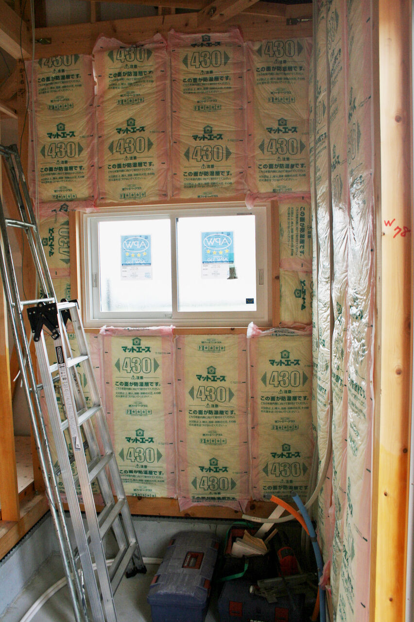 サッシも取り付けられ、
