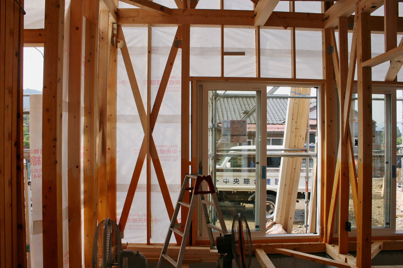柱と柱の間に斜めに入れいる部材が筋交いです