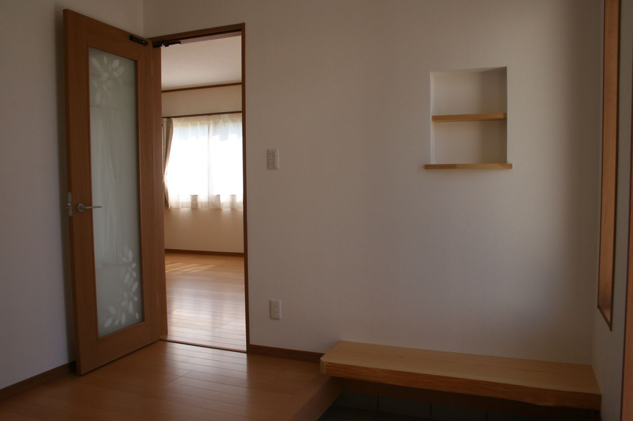 玄関には小物を置くニッチとベンチが